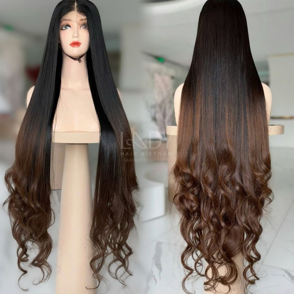 วิกผมคุณภาพเยี่ยมจากผมแท้เวียดนาม เนื้อผมหยักศก สีออมเบร สำหรับผู้หญิงผิวสี