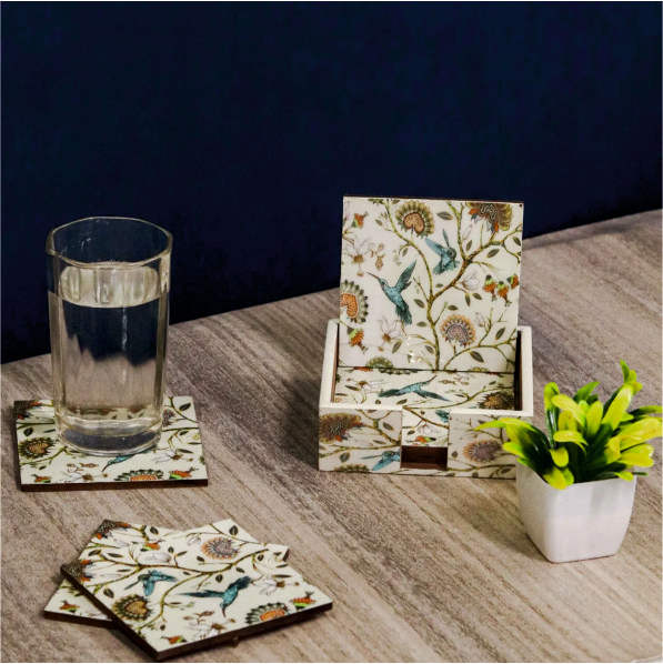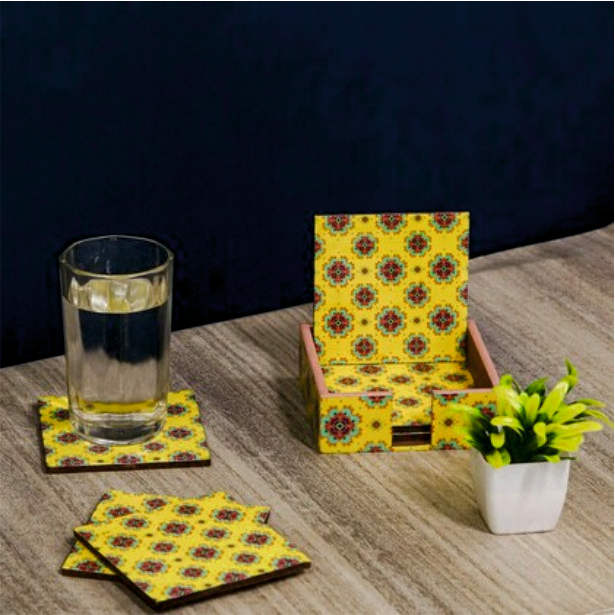 ชุดที่รองแก้วไม้ลายพิมพ์ดิจิตอลพร้อมเคลือบเคลือบเงาชุดที่รองแก้วไม้6ชิ้น