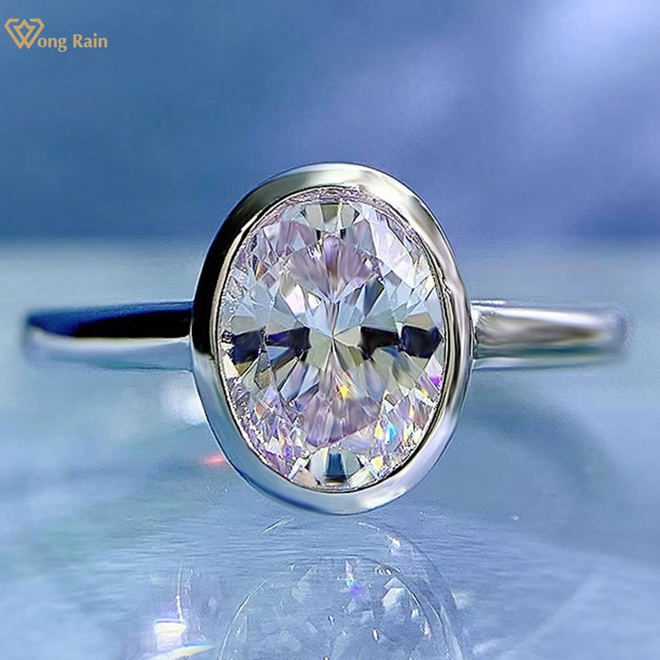 แหวนโอปอลประดับเพชรคาร์บอนสูงทรงรี 6*8 มม. ชุบทองคำ 18K เงินแท้ 925 ยี่ห้อ Wong Rain เครื่องประดับชั้นดีสำหรับงานหมั้น