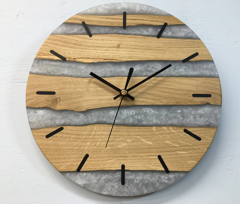 นาฬิกาแขวนผนังทำจากไม้และเรซินขนาด9นิ้วนาฬิกาแขวนผนังทรงกลมทำจากไม้น้ำแม่น้ำ