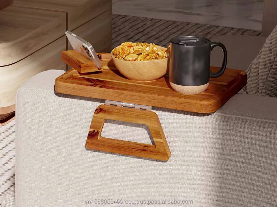 ถาดวางแขนไม้ทรงสี่เหลี่ยมทันสมัย ดีไซน์พับได้ แกะสลักง่าย ทำความสะอาดง่าย สำหรับโซฟา-TPT HO.013