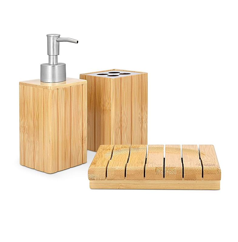 ชุดห้องน้ำไม้แบบคลาสสิกที่ใส่สบู่ที่ใส่แปรงสีฟันถ้วยจานสบู่