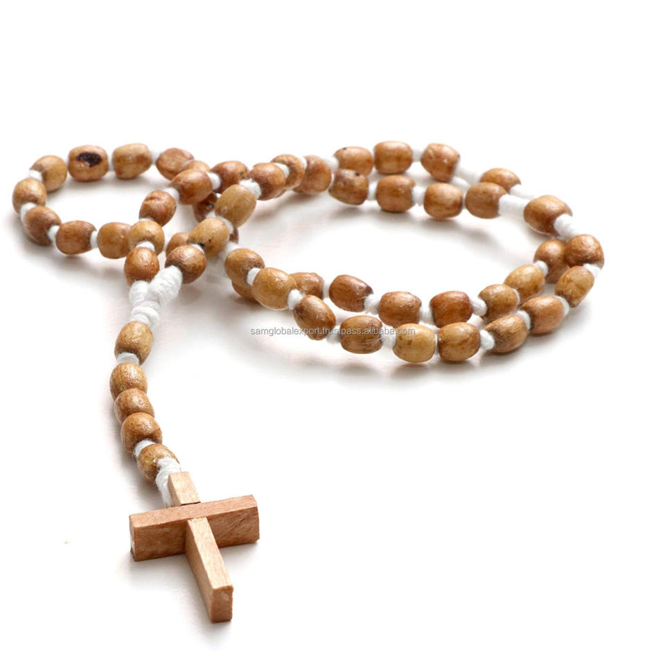 Wood Beads Religious Christian Jewelry Easter Gifts Wholesale Necklace Bulk OEM Handmade Catholic Rosary Cross Pendant Natural
