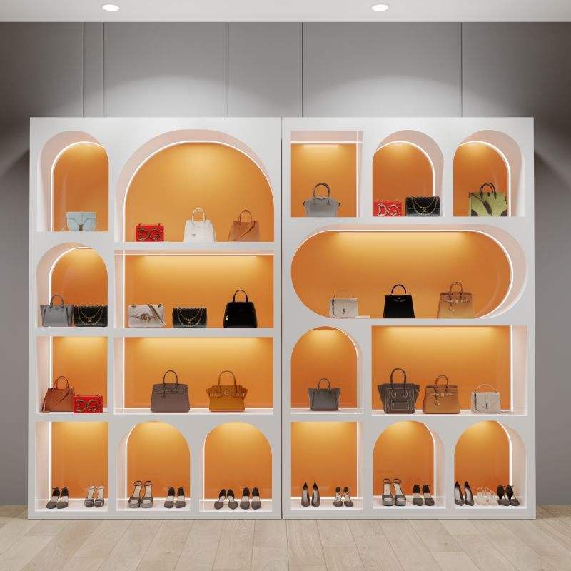 ตู้โชว์เครื่องสำอางสำหรับร้านเสริมสวย วัสดุไม้ สำหรับงานอบสี ห้องถ่ายทอดสด กระเป๋าใส่รองเท้า ตู้โชว์ฟิกเกอร์-ดีไซน์ทันสมัย