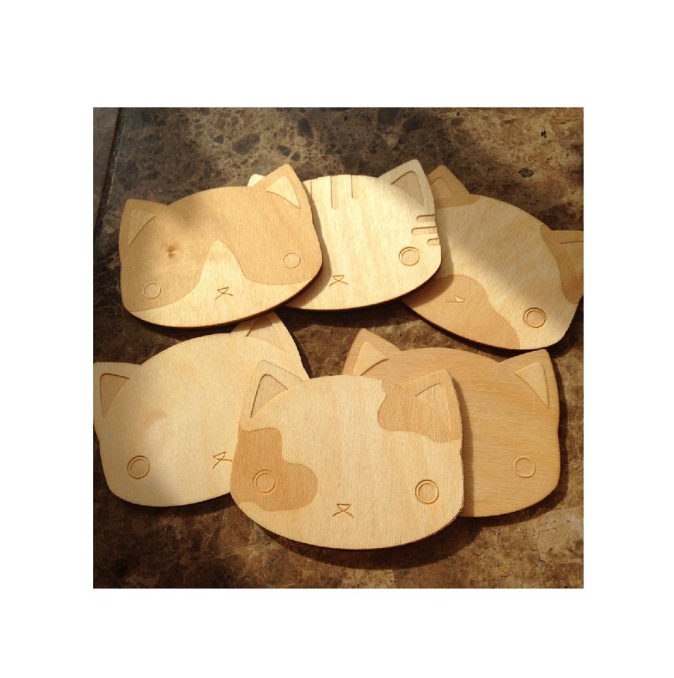 ที่รองแก้วไม้แบบหน้าแมวเบียร์ออกแบบให้เป็นรูปทรงสำหรับตกแต่งโต๊ะสำหรับถ้วยแก้วมัคและแผ่นซับลิเมชันไม้ก๊อก