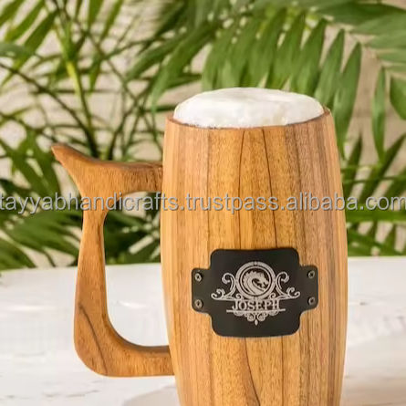 ถ้วยใส่เบียร์ไม้สไตล์โบราณถ้วยใส่น้ำแบบคลาสสิกแก้วมักทำจากไม้เหยือกไวน์พร้อมที่จับจากอินเดีย