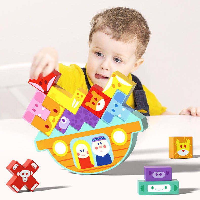 เกมฝึกตรรกะการจัดส่งสินค้าแบบดรอปชิปปิ้งบน Shopify ของเล่นไม้เสริมพัฒนาการเด็กเล็ก บล็อกไม้เสริมสร้างสมดุลสำหรับเด็ก