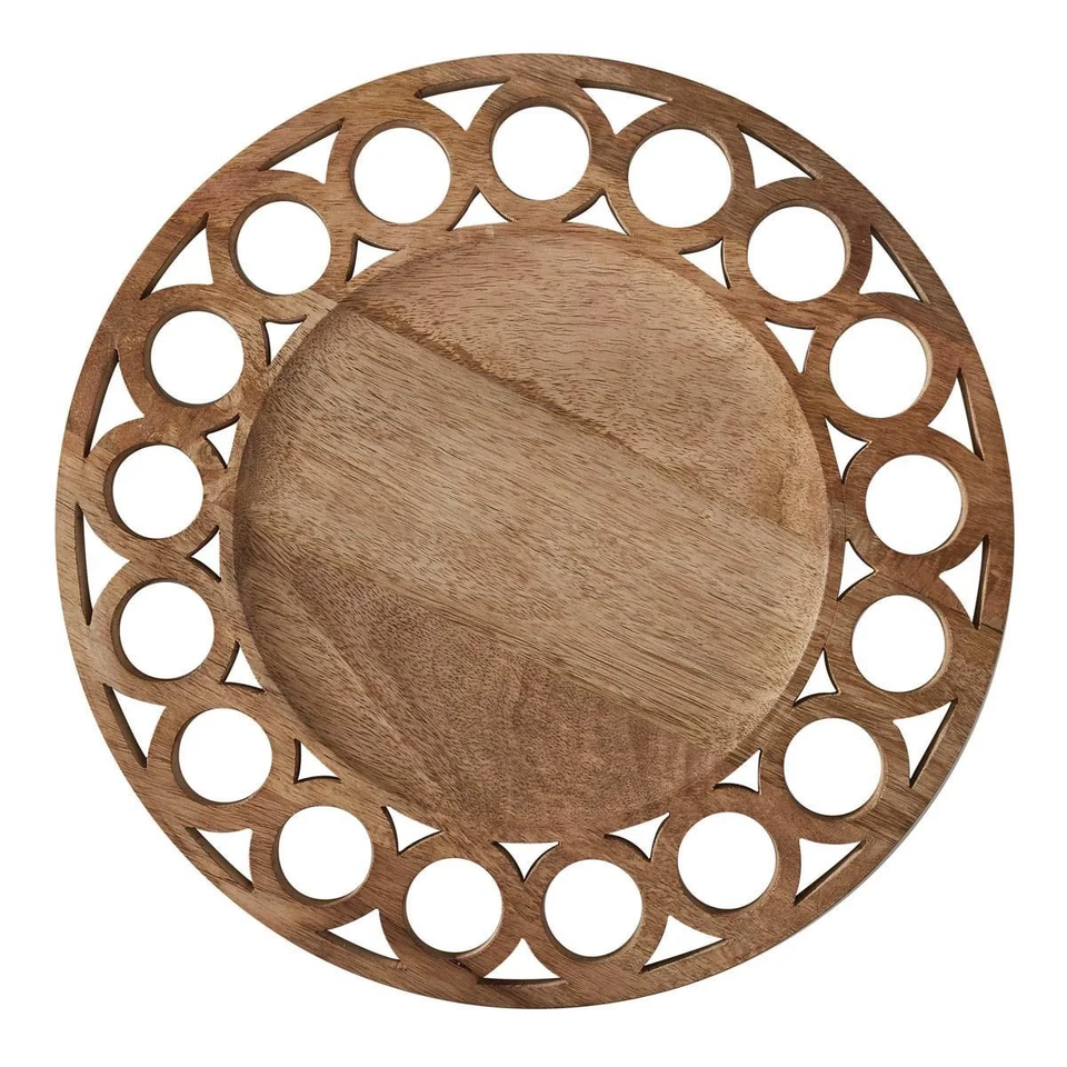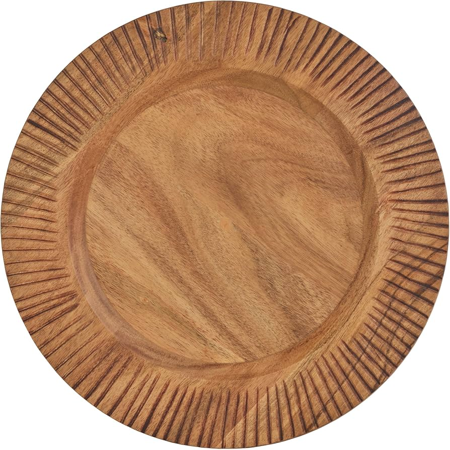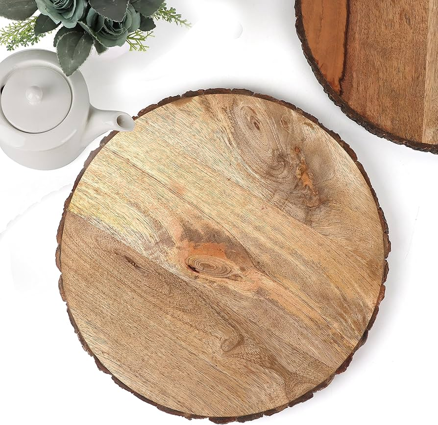 ชุดจานชามไม้ทรงกลมสำหรับโต๊ะอาหารดีไซน์แฟนซีจานกลมแบบเรียบง่าย
