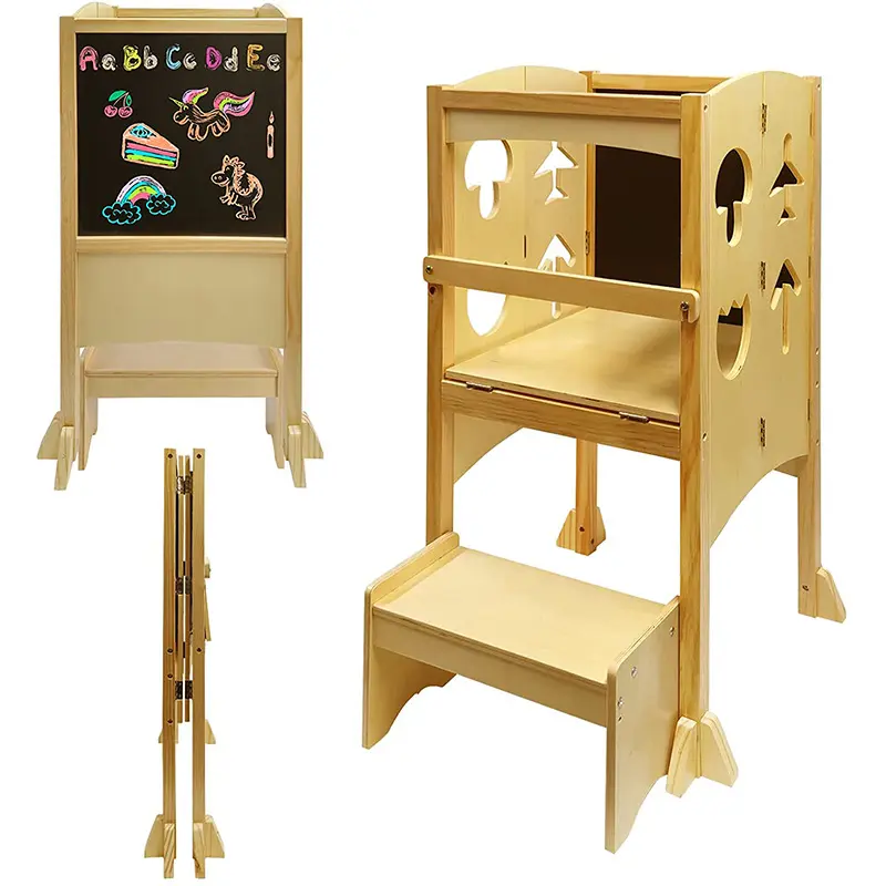 หอไม้ช่วยการเรียนรู้สำหรับเด็กหัดเดินบันไดสำหรับเด็กหัดเดินพร้อมกระดานวาดรูปสำหรับทำอาหาร