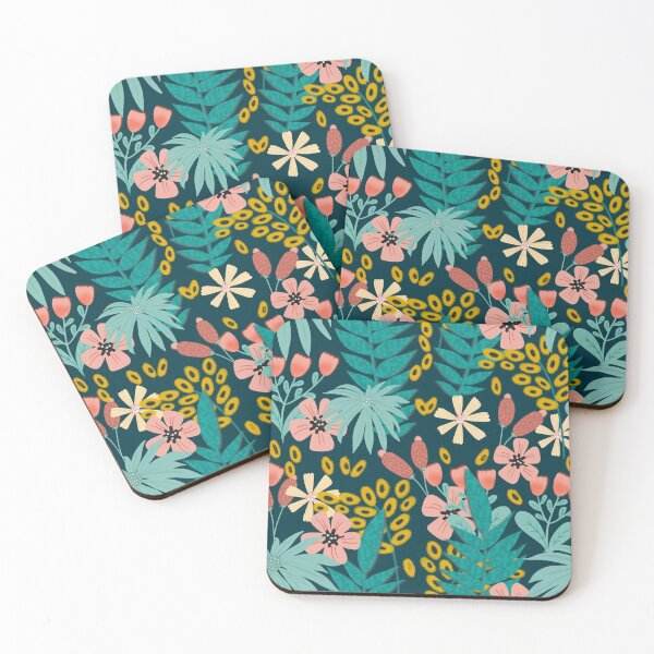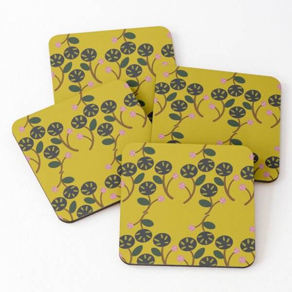 จานรองแก้วไม้พิมพ์ลายสีเทาถาดรองแก้วเสิร์ฟชา4ชิ้นถาดรองแก้วสำหรับบ้านและห้องครัว