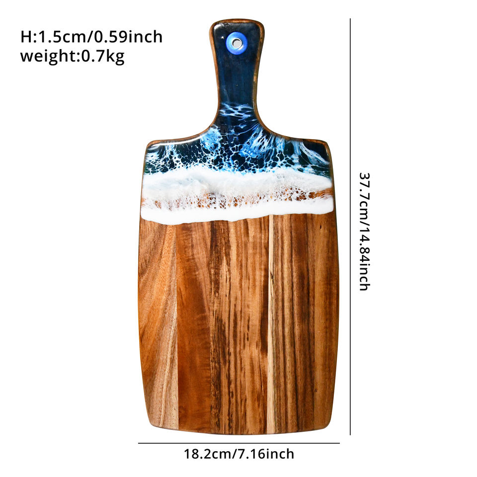 เขียงไม้เรซินลายคลื่นสีฟ้าสำหรับห้องครัวใดๆและเสิร์ฟชีสอเนกประสงค์และเขียงชาร์คิวรี