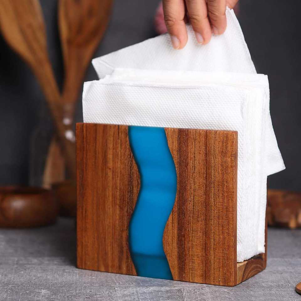 ที่ใส่กระดาษเช็ดปากไม้เคลือบอีพ็อกซี่ สำหรับห้องรับประทานอาหาร ห้องครัว สีฟ้า กล่องใส่กระดาษทิชชูเรซิ่น ที่ใส่กระดาษเช็ดปากไม้เรซิ่น งานฝีมือเรซิ่น