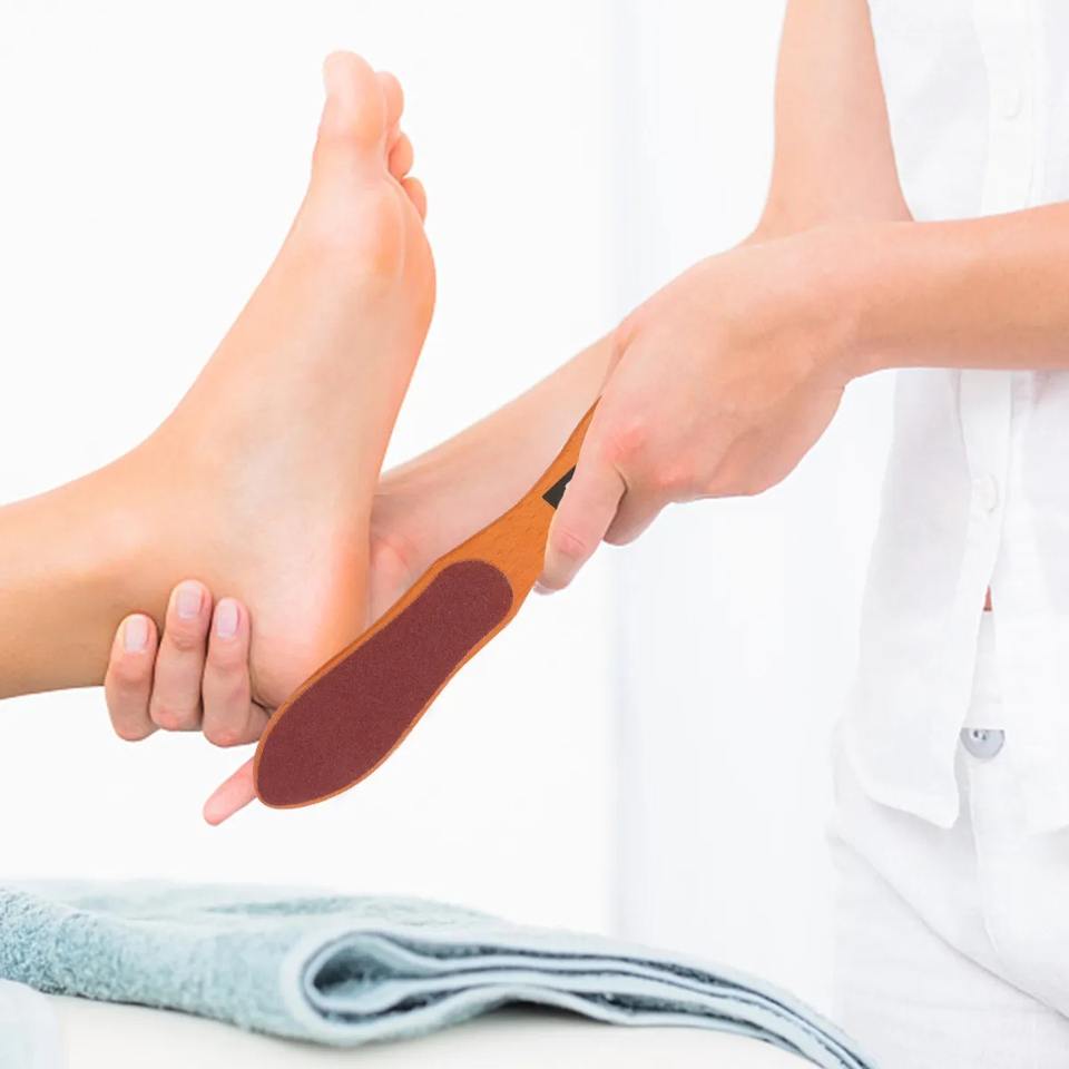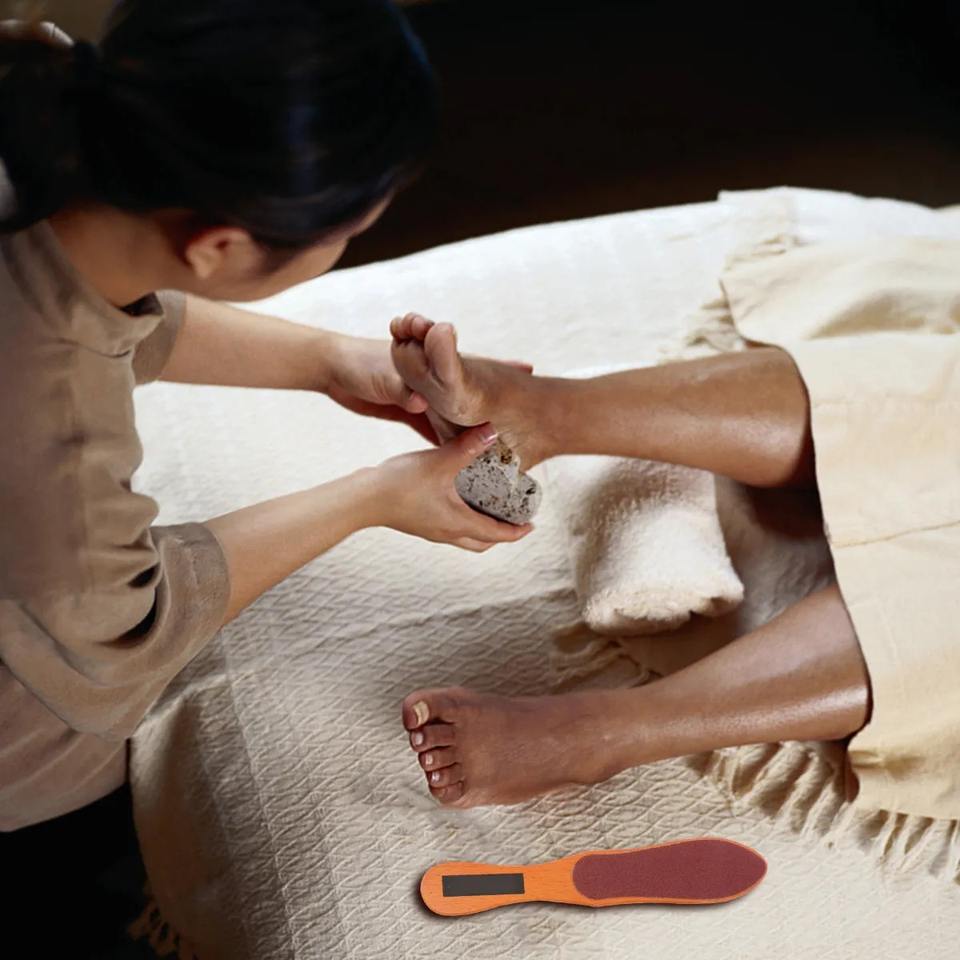 เครื่องมือขัดส้นเท้าไม้แบบสองด้าน สำหรับขจัดหนังด้านและผิวแข็ง ด้ามจับถนัดมือ