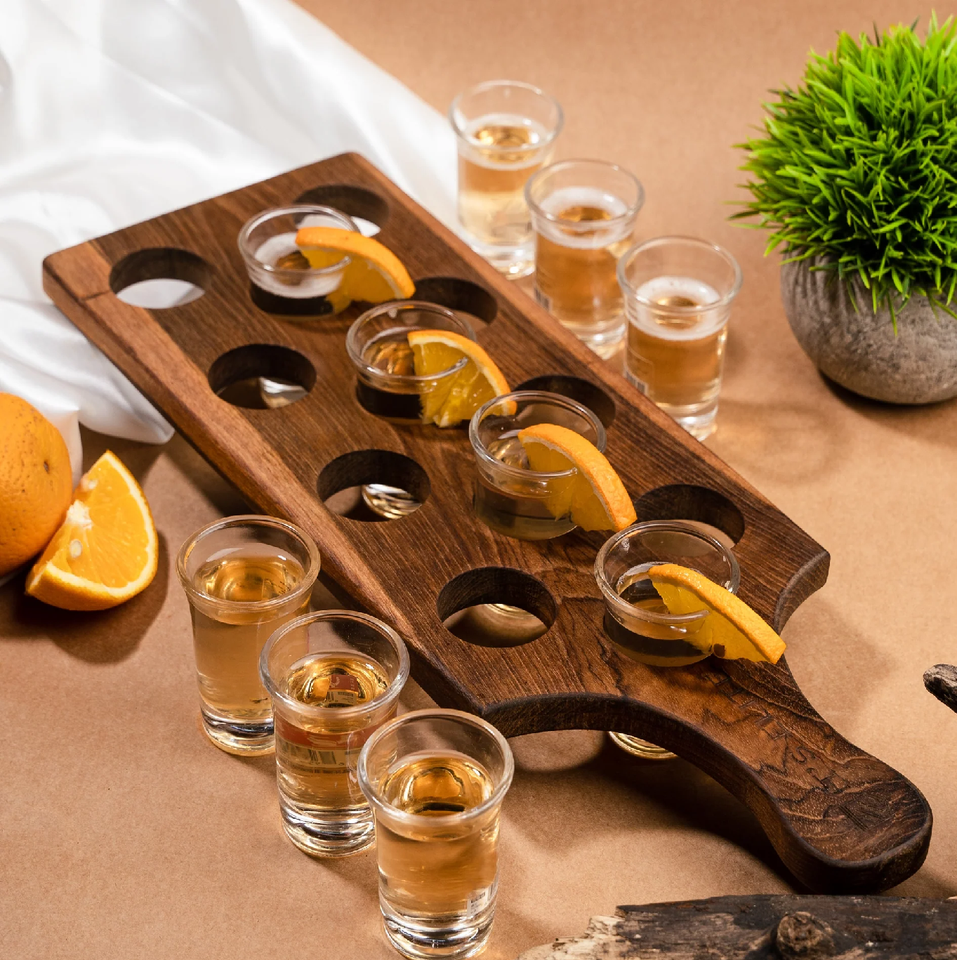 ที่วางแก้วไม้ขาตั้งวิสกี้และเหล้าเครื่องมือบาร์สำหรับปาร์ตี้ & คอลเลกชัน6ชิ้นที่วางแก้วช็อต
