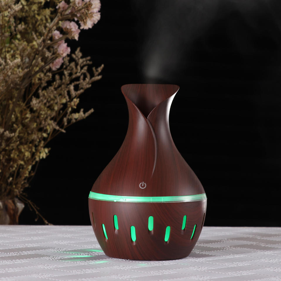 เครื่องกระจายกลิ่นอโรมาลายไม้ 300 มล. เครื่องเพิ่มความชื้นแบบอัลตราโซนิกพร้อมไฟ LED สำหรับใช้ในบ้าน ใช้พลังงานจาก USB