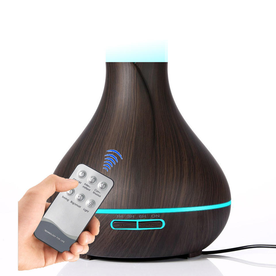 เครื่องกระจายกลิ่นอโรมาลายไม้ 300 มล. พร้อมไฟกลางคืน 7 สี สำหรับใช้ในบ้าน