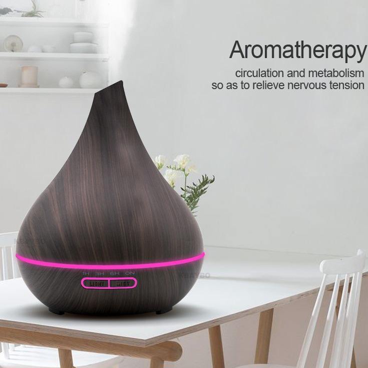 เครื่องกระจายกลิ่นอโรมาลายไม้ 400 มล. เครื่องเพิ่มความชื้นแบบ USB พร้อมตัวตั้งเวลาสำหรับใช้ในบ้าน
