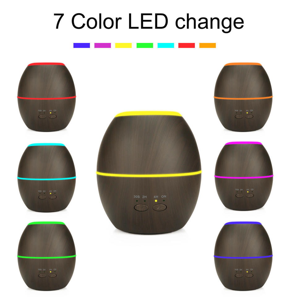 เครื่องกระจายกลิ่นอโรมาลายไม้ เครื่องเพิ่มความชื้นขนาดเล็ก 0.5 ลิตร สำหรับใช้ในบ้าน แบบตั้งโต๊ะ พร้อมฟังก์ชั่นตั้งเวลา ลายไม้สีอ่อน