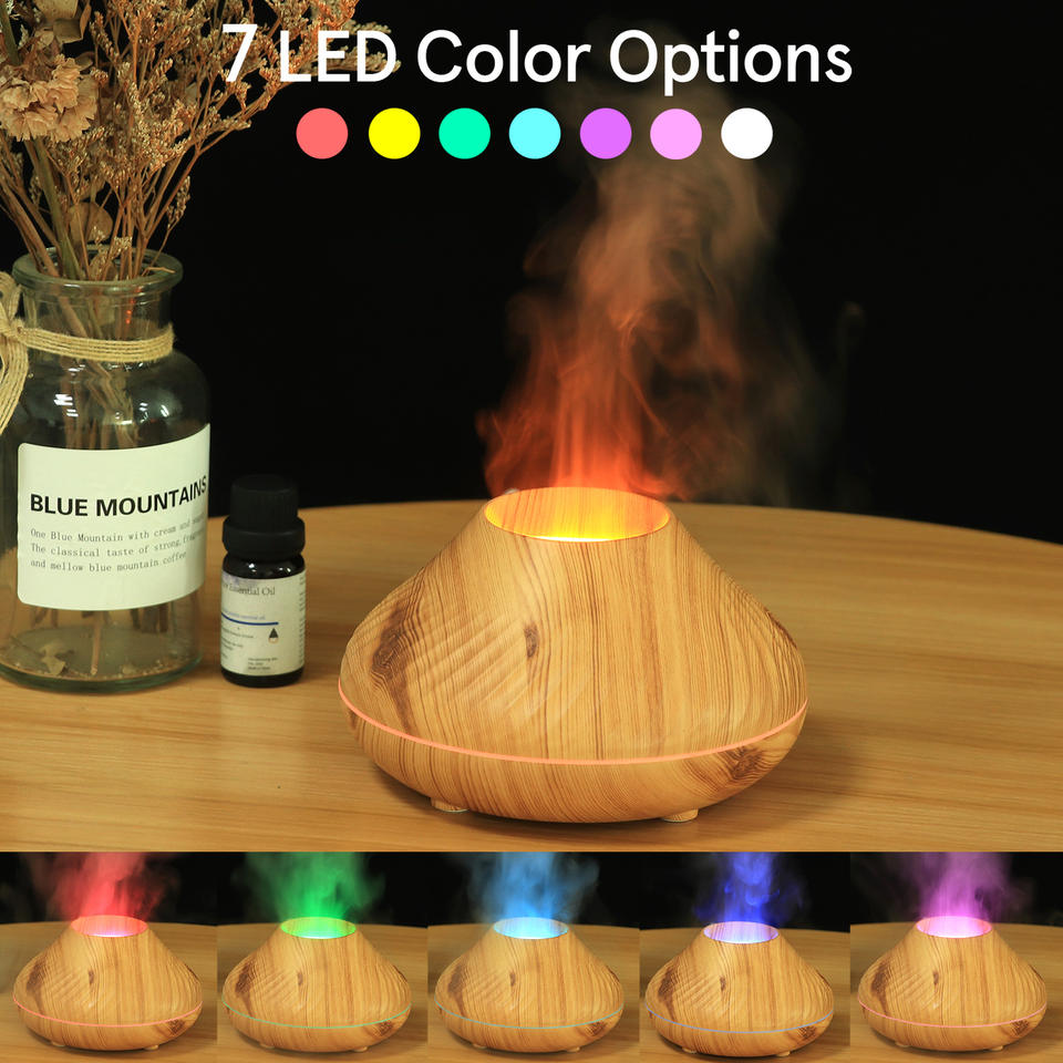เครื่องกระจายกลิ่นอโรมาลายไม้ พร้อมไฟ LED เครื่องเพิ่มความชื้นในอากาศ สร้างเอฟเฟกต์เปลวไฟ ใช้พลังงานจาก USB ไฟตกแต่งบ้าน 5V ครอบคลุมพื้นที่ 31-40 ตร.ม.
