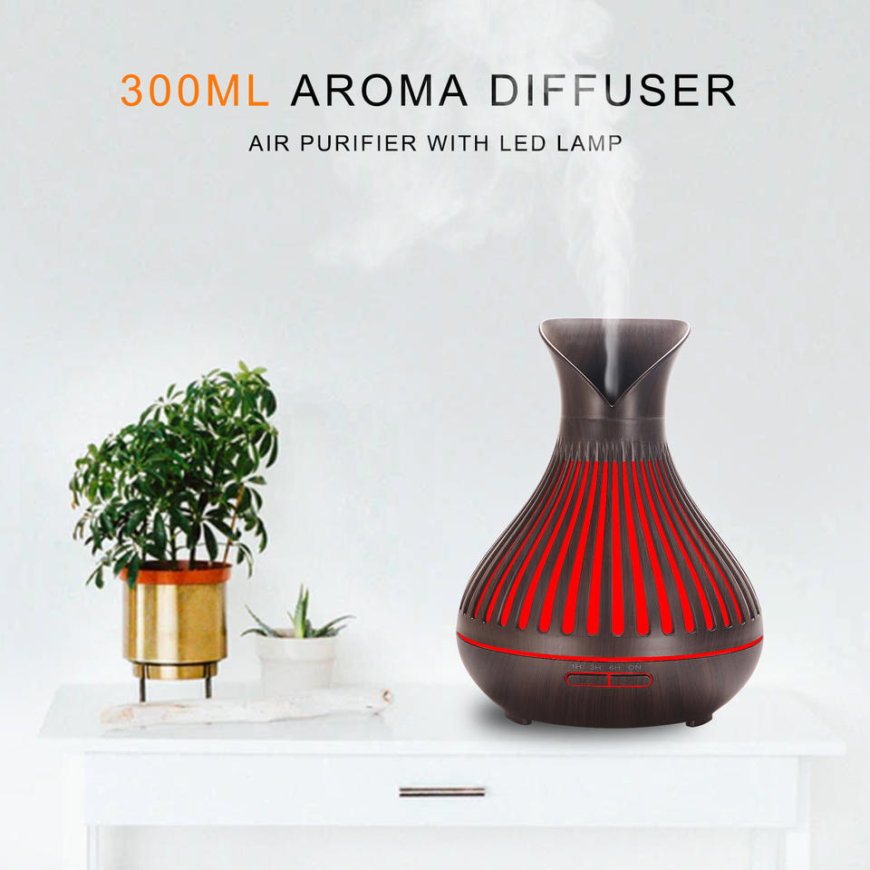 เครื่องเพิ่มความชื้นลายไม้ 500 มล. รูปทรงแจกัน เครื่องกระจายน้ำมันหอมระเหย ใช้ในบ้าน ใช้งานแบบกลไก