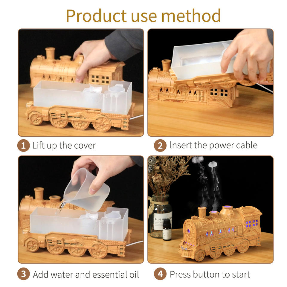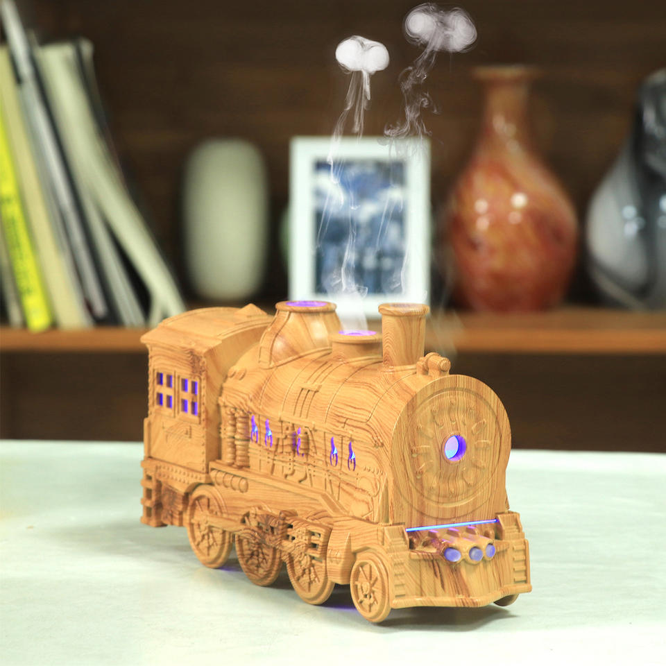 เครื่องเพิ่มความชื้นลายไม้พร้อมไฟ LED รูปเปลวไฟ เครื่องกระจายกลิ่นอโรมาสำหรับใช้ในบ้าน 10-20 ตร.ม. ความจุน้อยกว่า 0.5 ลิตร