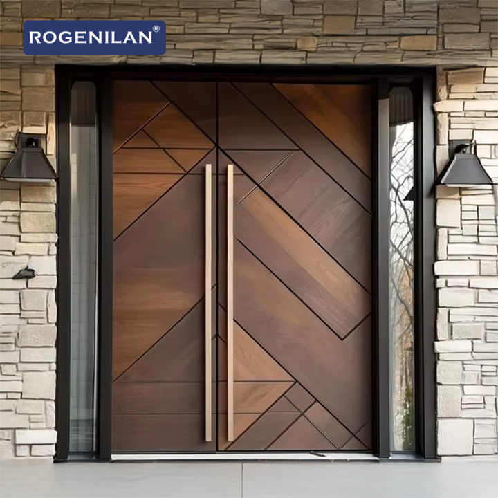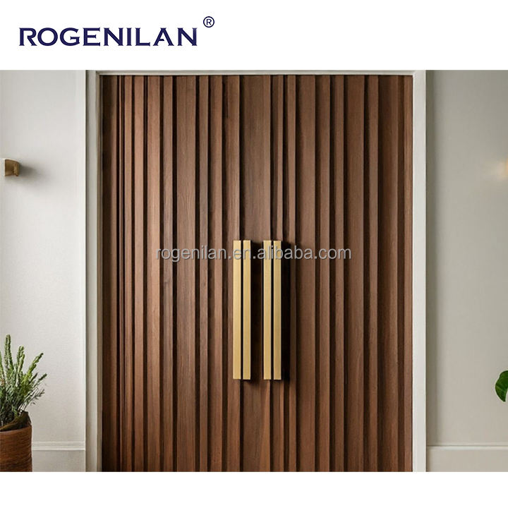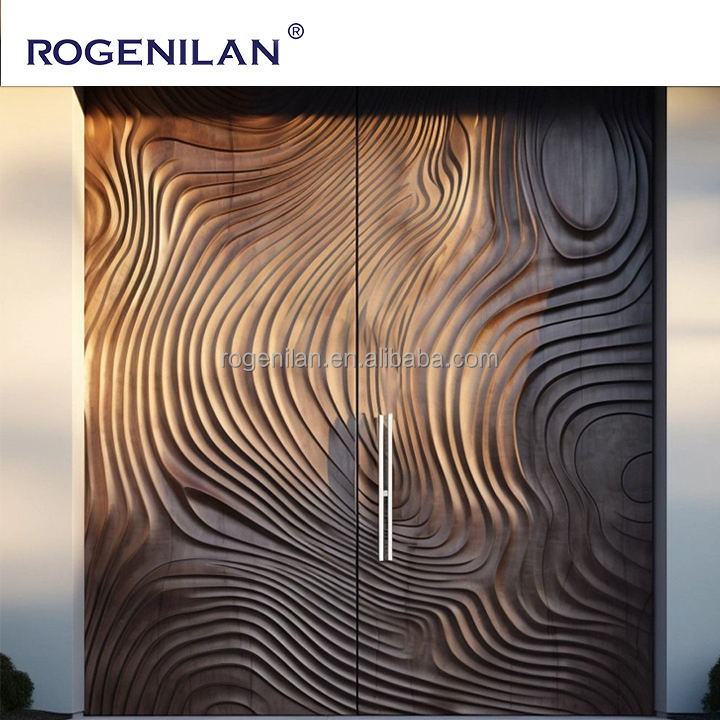 ประตูหน้าอลูมิเนียมแกะสลักลายไม้ 3 มิติ ดีไซน์หรูหรา ลายคลื่น เรียบง่าย สำหรับบ้านวิลล่า