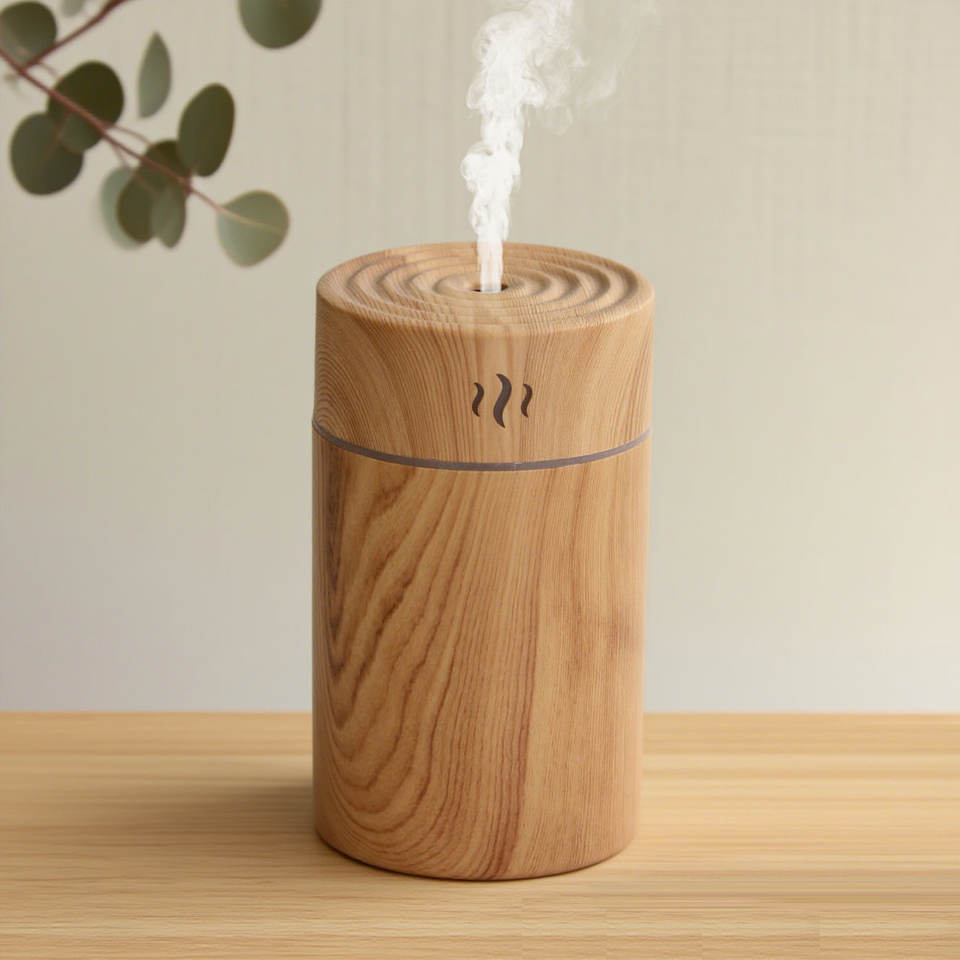 เครื่องเพิ่มความชื้นในอากาศแบบ USB ลายไม้ ความจุ 260 มล. พร้อมฟังก์ชั่นกระจายกลิ่นหอม สำหรับใช้ในบ้าน พร้อมระบบพ่นไอน้ำ