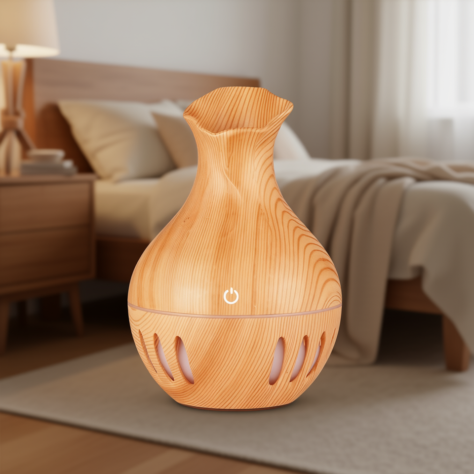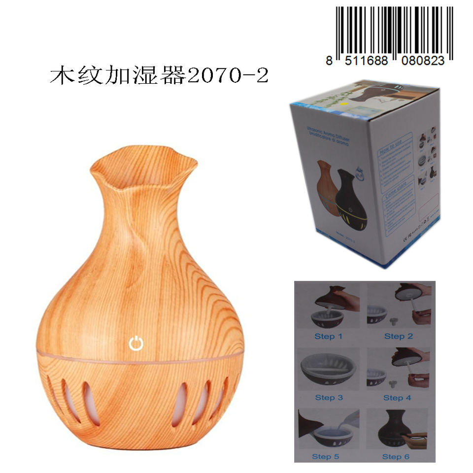 เครื่องทำความชื้นอัลตราโซนิกลายไม้ 0.5-2 ลิตร พร้อมไฟกลางคืน ใช้ในบ้าน ใช้พลังงานจาก USB