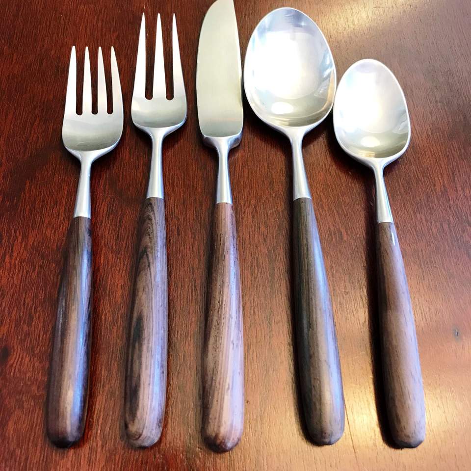 ชุดช้อนส้อมสแตนเลสด้ามไม้2ถึง24ชิ้นภาชนะสเตนเลสเกรด202หรือ304และเคลือบ PVD อัตราโรงงาน