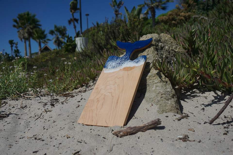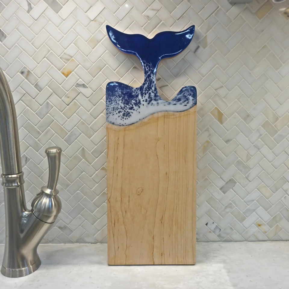 กระดานไม้ทำด้วยมือรูปคลื่นทะเลทำจากเรซินทำด้วยมือสำหรับชีสหางปลาวาฬ