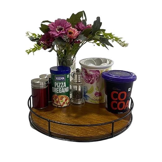 ชั้นวางเครื่องเทศแบบหมุนได้สำหรับห้องครัวทำจากไม้ขี้เกียจพร้อมก้านโลหะและเครื่องมือติดตั้ง
