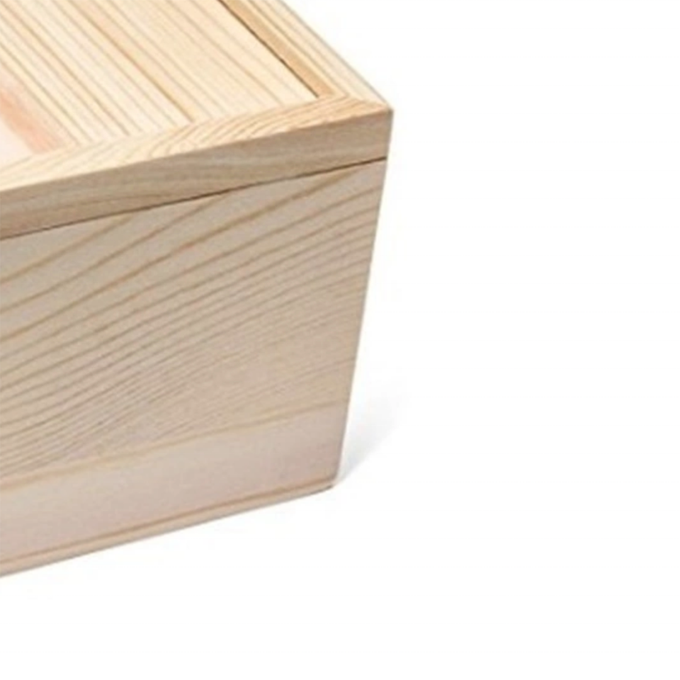 กล่องของขวัญฝาไม้แบบเลื่อนได้ทำด้วยมือกล่องไม้สนทรงสี่เหลี่ยมสำหรับงานฝีมือและเครื่องใช้บนโต๊ะอาหารลายตาราง