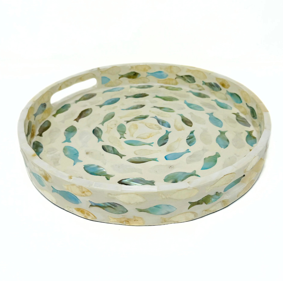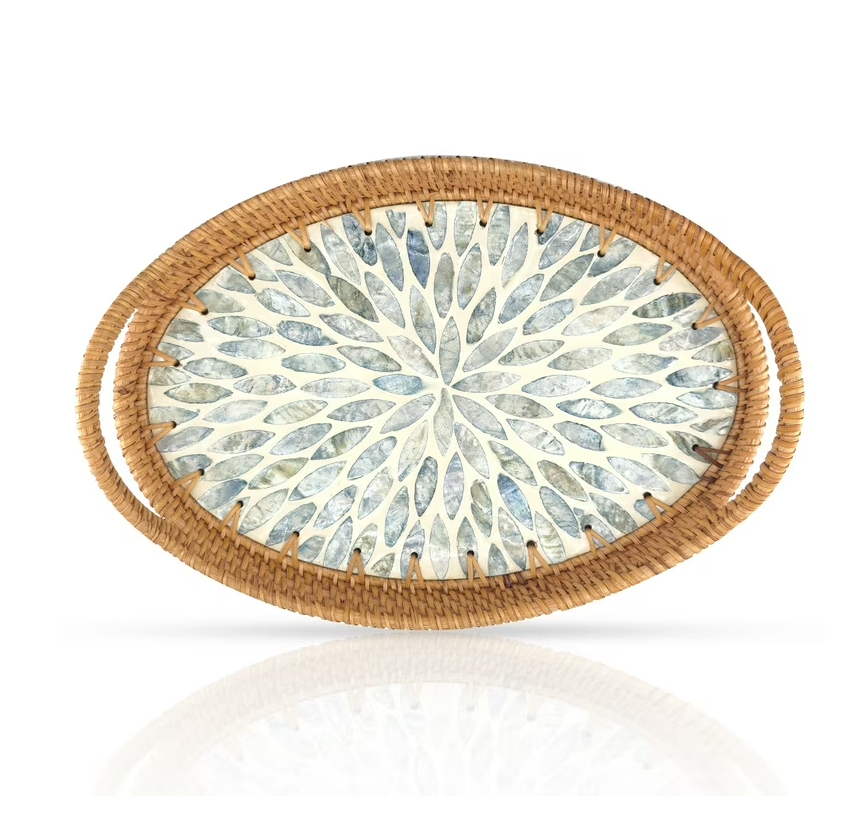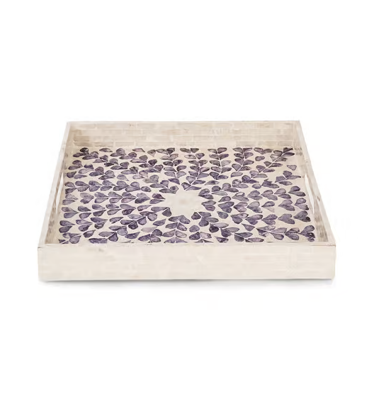 ถาดเสิร์ฟไม้และเปลือกหอยมุก ลายใบไม้ งานฝีมือคุณภาพสูง งานหัตถกรรมไม้และเปลือกหอยมุก