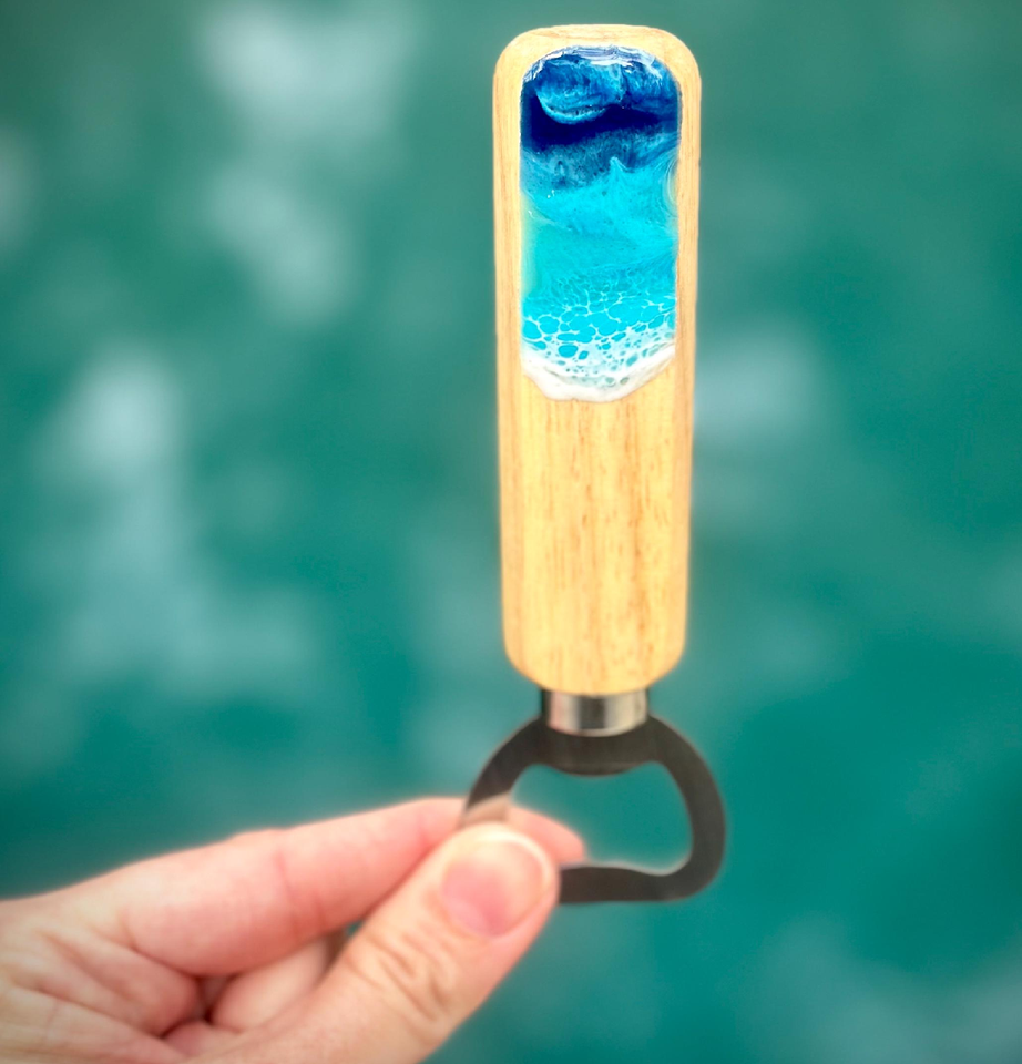 ที่เปิดขวดไม้ & เรซิ่นด้ามจับเรซินแกะสลักโลโก้เป็นมิตรกับสิ่งแวดล้อมและงานฝีมือไม้เครื่องครัวที่ใช้