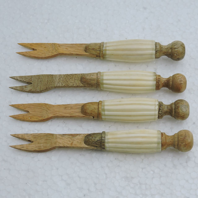 ชุดส้อม4ชิ้นแบบใช้แล้วทิ้งด้ามทำจากไม้และเรซิ่นดีไซน์ที่ดีที่สุดผู้ผลิตและผู้ส่งออก