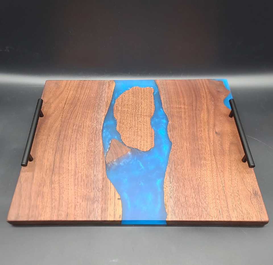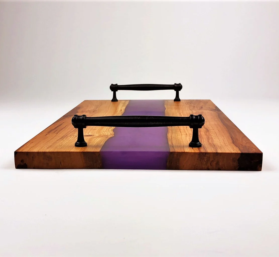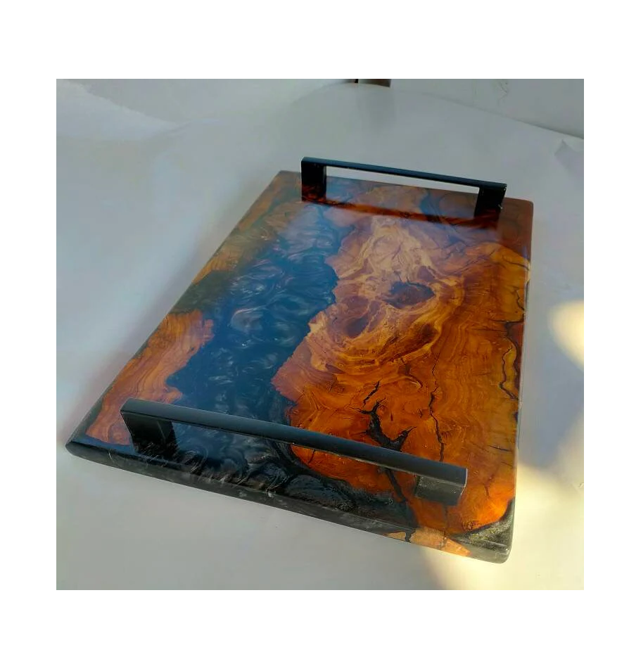 ถาดเสิร์ฟไม้และเรซินมีหลายสีแวววาวที่จับสไตล์โลหะสำหรับตกแต่งบ้านโรงแรมหรือร้านอาหารถาดตกแต่งทางศาสนา