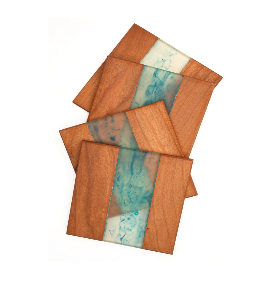 ชุดถาดรองแก้วไม้และเรซินกันลื่นทนความร้อนซักได้ขนาด30*44ซม. สำหรับอุปกรณ์โต๊ะอาหาร