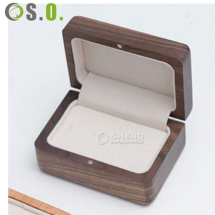 กล่องใส่แหวนไม้วอลนัทสุดหรู กล่องของขวัญขนาดเล็ก กล่องโชว์เครื่องประดับงานแต่งงาน กล่องเก็บแหวน
