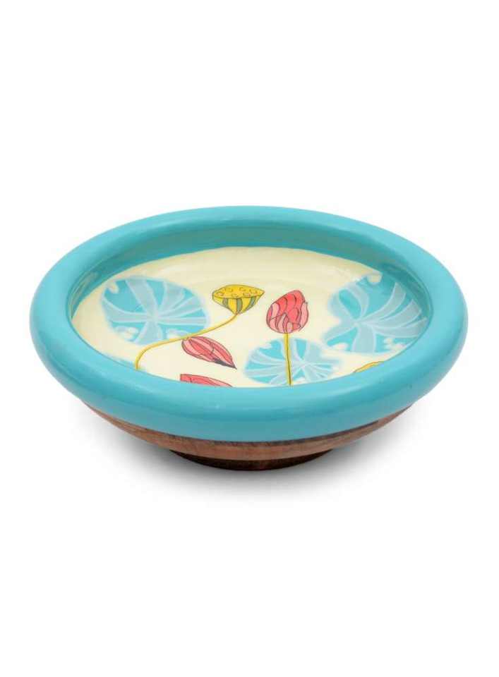 ชามเสิร์ฟไม้ ลายกระเบื้องเคลือบดอกไม้