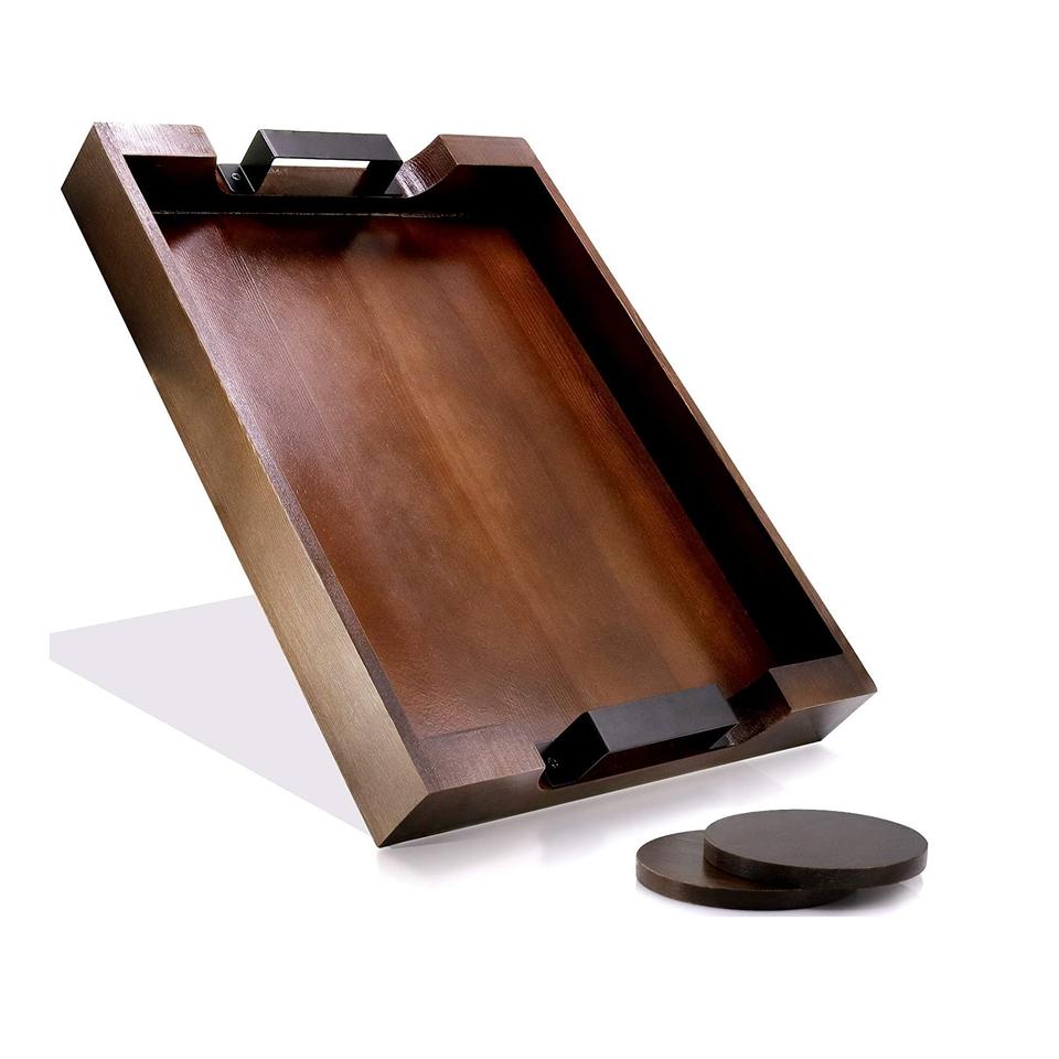 ถาดไม้เสิร์ฟพร้อมที่จับสำหรับผักรูปทรงสี่เหลี่ยมและงานฝีมืออินเดีย
