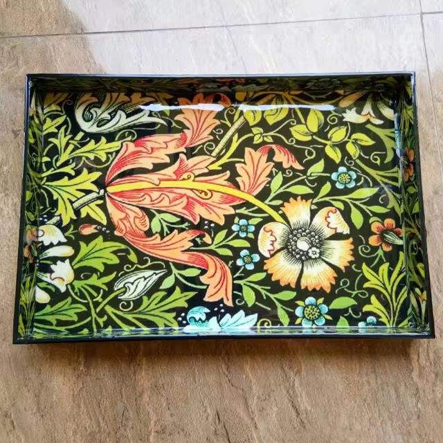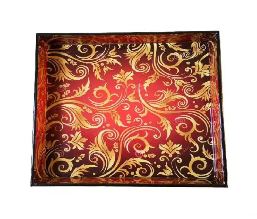 ชุดถาดเสิร์ฟทำจากไม้พร้อมที่จับชุดถาดเสิร์ฟอาหารสำหรับมื้อเช้าโต๊ะกาแฟออตโตมันร้านอาหาร