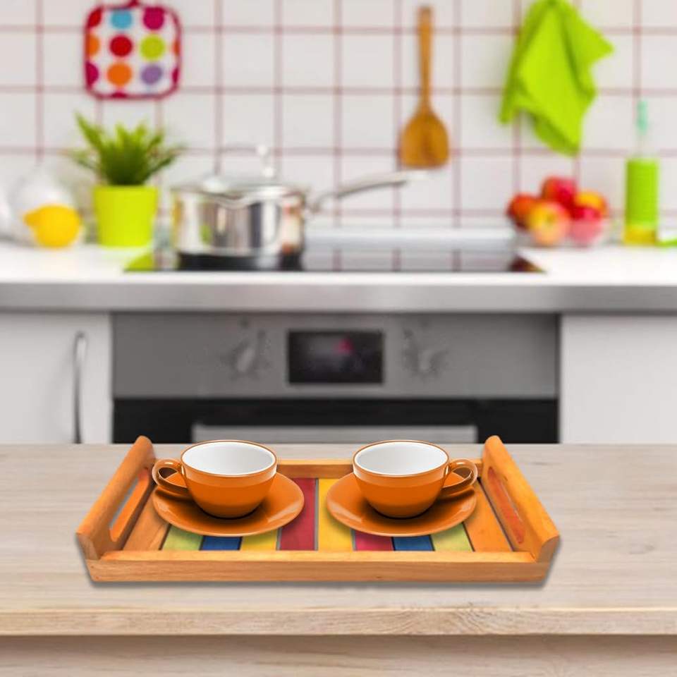 ถาดไม้พร้อมหูจับอเนกประสงค์ ถาดหลากสีสำหรับเสิร์ฟชาและกาแฟ ราคาถูกที่สุดสำหรับการขาย