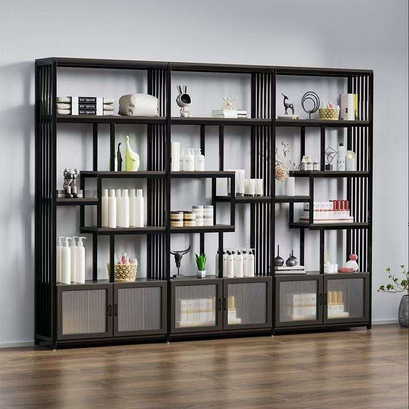 ชั้นวางของไม้สำหรับร้านตัดผม ร้านเสริมสวย-ตู้เก็บเครื่องสำอางดีไซน์ทันสมัยพร้อมกระจก เฟอร์นิเจอร์ร้านเสริมสวย
