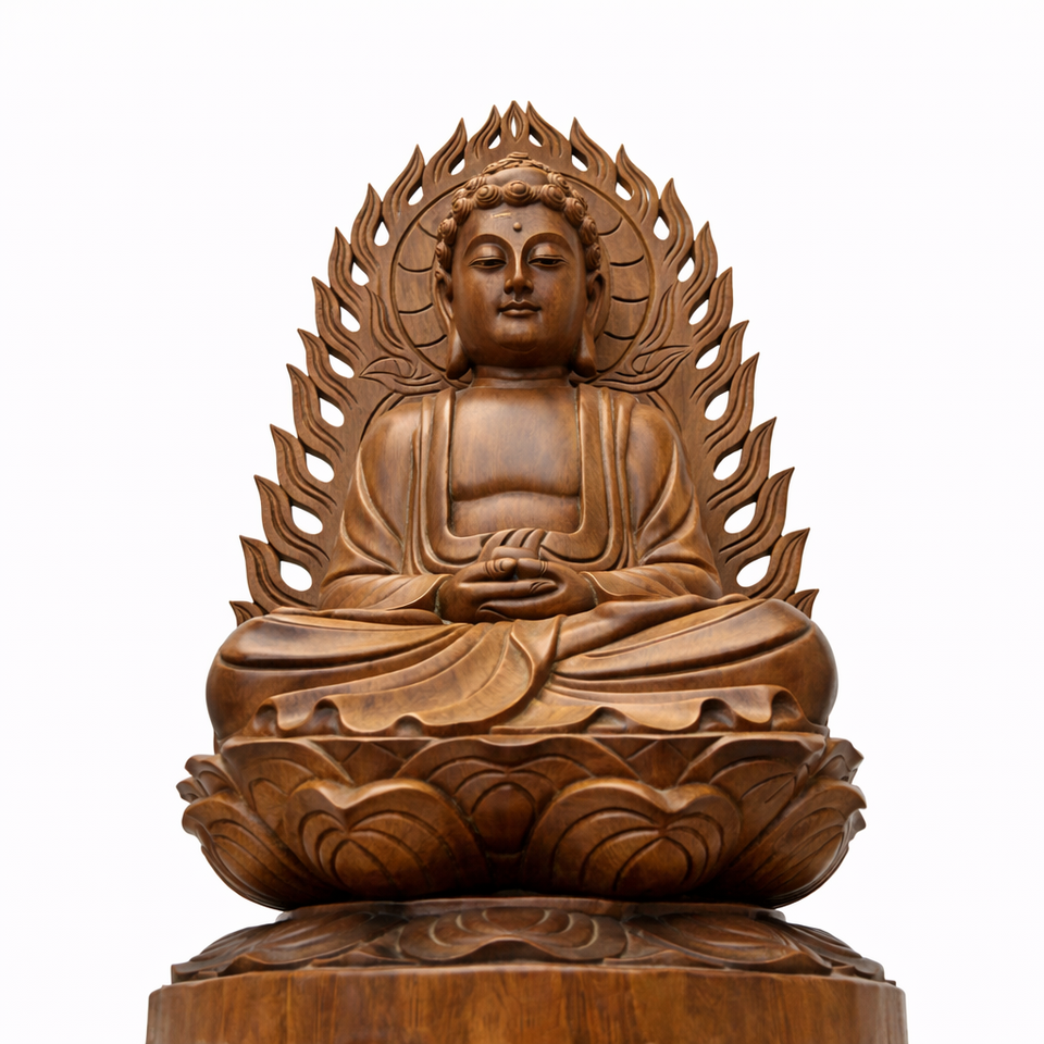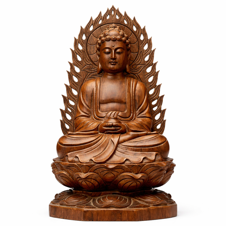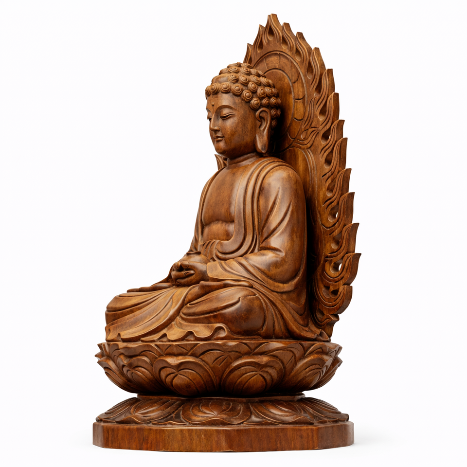 รูปปั้นไม้สีน้ำตาลเข้มของพระพุทธเจ้า