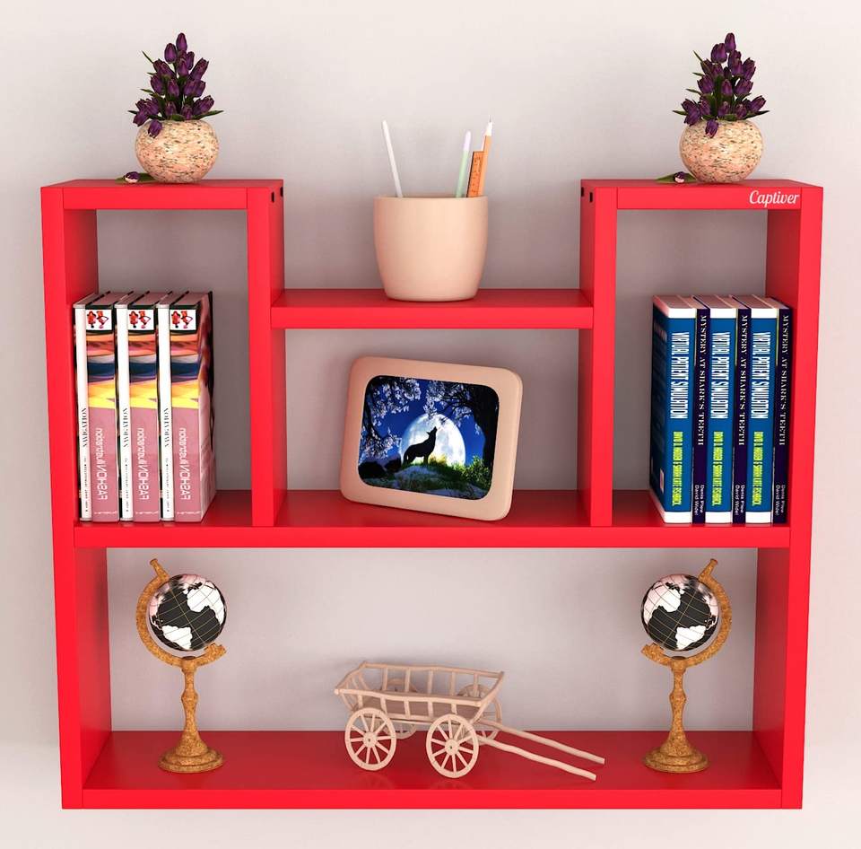 ชั้นวางหนังสือติดผนังไม้แบบเปิด Skybow (ชั้นที่ 5) สำหรับห้องนั่งเล่น ห้องทำงาน ห้องอ่านหนังสือ ตู้เก็บของ ห้องนอน ห้องครัว