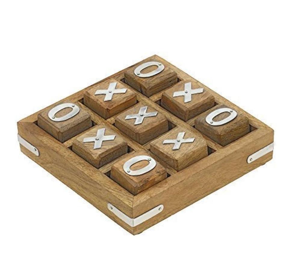 เกมกระดานไม้ XOXO ทำมือจากไม้มะม่วง พร้อมทองเหลือง เกมติ๊กแทคโทและหมากรุกสำหรับงานปาร์ตี้ กระดานหมากรุกไม้ทำมือ