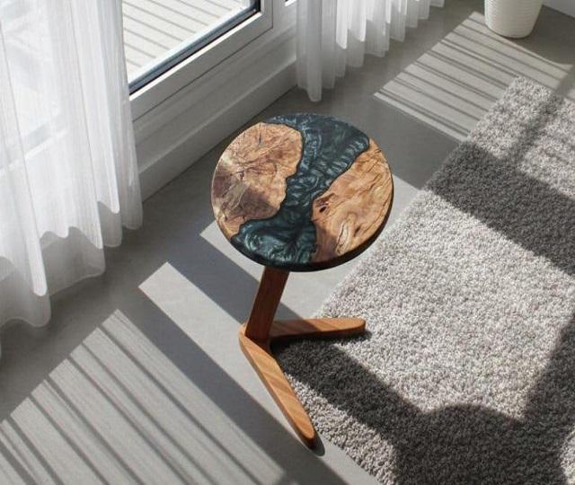 โต๊ะข้างวางเครื่องดื่มลายไม้และเรซิ่น สีดำและสีงาช้าง เฟอร์นิเจอร์ตกแต่งสไตล์โมเดิร์น เคลือบสีดำ ผลิตโดยผู้ผลิต