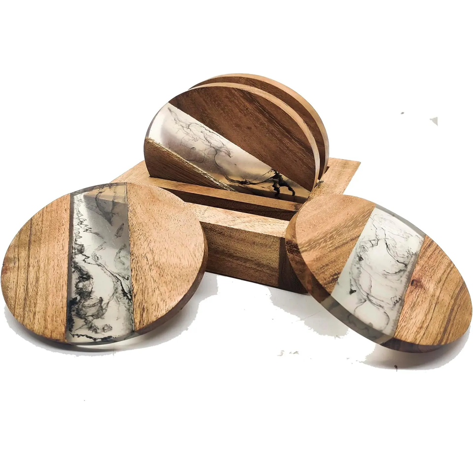 ถาดรองแก้วทรงกลมทำจากไม้และเรซินดีไซน์ล่าสุดที่มีคุณภาพเหมาะสำหรับถ้วยกาแฟใช้ในสำนักงาน