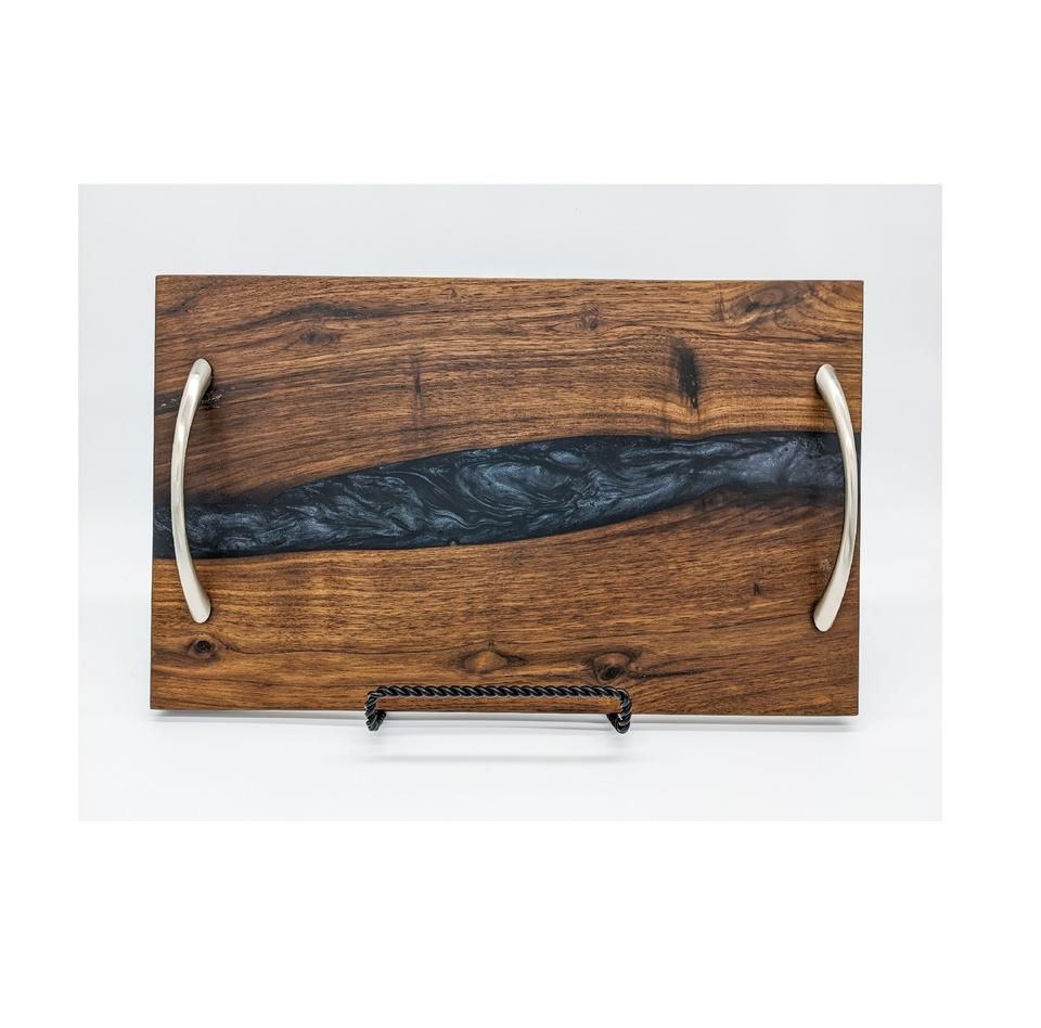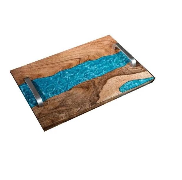 ถาดเสิร์ฟอาหารไม้และเรซินถาดเสิร์ฟอาหารจานเสิร์ฟชีสสำหรับด้ามจับเหล็ก