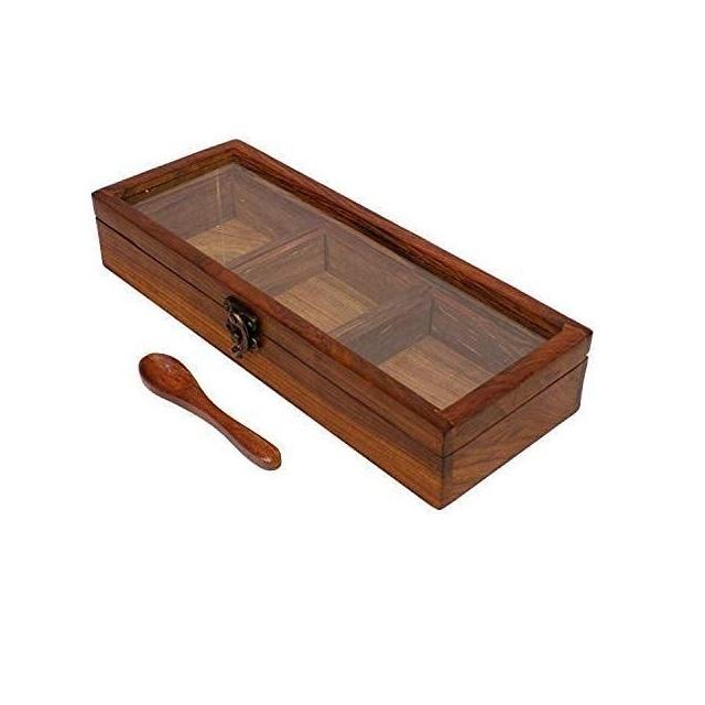 กล่องเครื่องเทศไม้มีสไตล์ทันสมัยทำด้วยมือชุดเครื่องเทศทำจากไม้พร้อมกระจกด้านบนพร้อมช้อนสำหรับห้องครัว